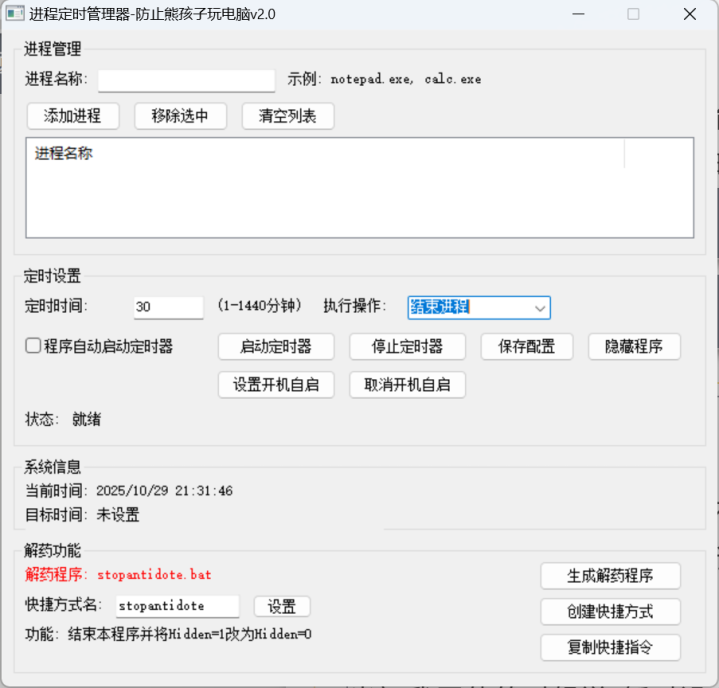 进程定时管理器是一款专为家长设计的电脑使用控制工具。它能有效管理孩子使用电脑的时间和内容,帮助你建立健康的数字习惯。